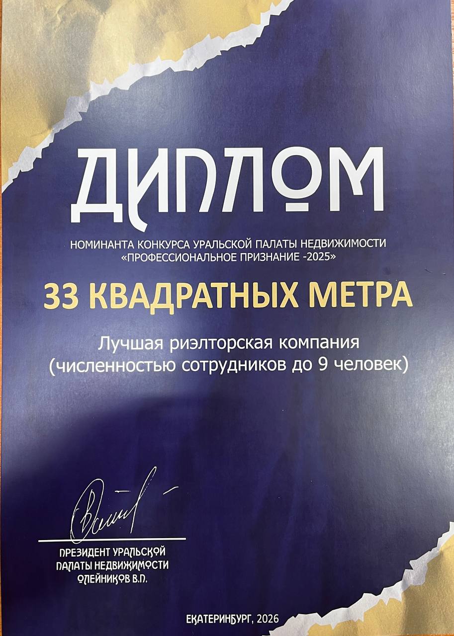 06 февраля 2026 года, в преддверии Дня Риэлтора , состоялось очередное отчетно-выборное собрание УПН . Исполнительная дирекция отчиталась по работе за 2025 год и наметили планы на 2026 год. Так же избрали президента УПН на ближайшие 2 года . Им стал : Олейников Василий Петрович, наш директор АН "33 квадратных метра" - Степанов А. А. вновь избран в Совет УПН, поздравляем! Во время торжественной части нашему агентсву недвижимости вручили Диплом от УПН, заслуженно, приятно.